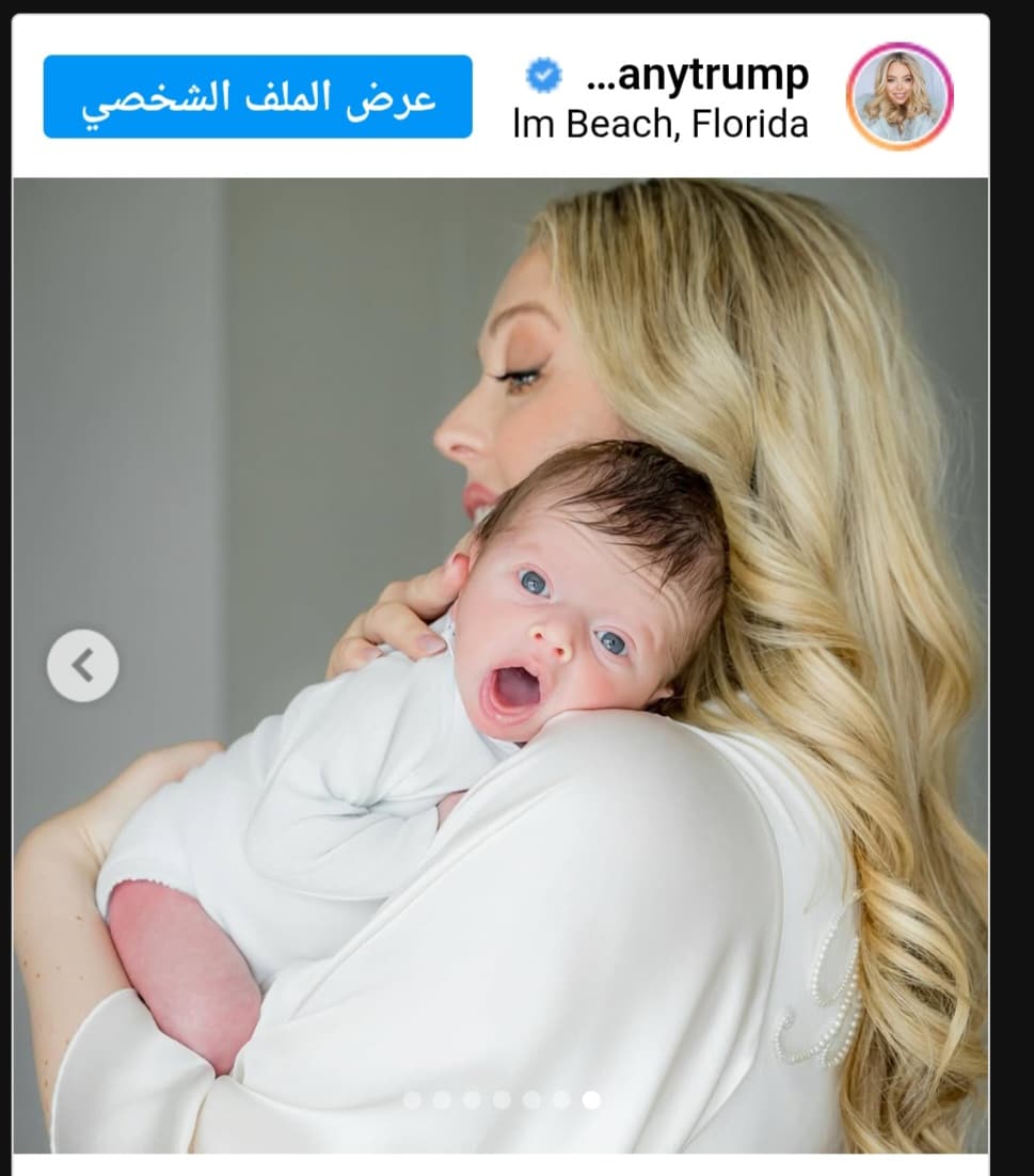 وظهرت تيفاني تحتضن طفلها إلى جانب مايكل، وأرفقت تيفاني الصور بتعليق عبّرت فيه عن مشاعرها قائلة: “حبّ حياتنا، ألكسندر ترامب بولس